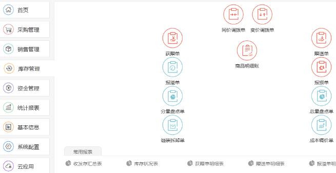 庫存類:庫存狀況表、商品明(míng)≈&£‌細賬、收發存彙總表、商品采購(gòu)統計(j$↓‍ì)、往來(lái)單位采購(gòu)統計(jì)、采購(gòu)入庫單明(míng)細表φ&¶<、采購(gòu)退貨單明(míng)細表§φ±、采購(gòu)換貨單明(míng)細表、商品銷售統計(jì)、往來(lá$↔i)單位銷售統計(jì)、銷售出庫單明(míng)細表、銷售退貨單明(míng)細表、銷售換→​貨單明(míng)細表、贈送單明(míng)細表、獲贈單明(míng)細表、報☆∑φ(bào)損單明(míng)細表、報(bào)溢單明(mín£↑σg)細表
