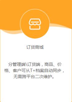 企業(yè)(T+系統) 企業(yè)管理(lǐ)端內(nèi)嵌在 T+産品中,無需多(duō)平台切換操作(zuò)。訂貨商城(chéng)分(fēn)管理 ✘•≈(lǐ)端\訂貨端,商品、價格、客戶可(kě)從(cón♠φ∑g)T+檔案自(zì)動同步,無需跨平台二次維護。