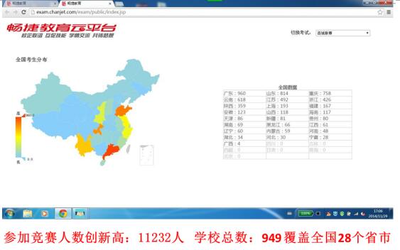 2015年(nián)12月(yuè),暢捷通(tōng)舉辦第八屆會(huì)β∑↔計(jì)文(wén)化(huà)節百城(chéng)聯賽,這(zhè)是✘§(shì)國(guó)內(nèi)首個(gè)雲平台大(dà∑δ≥↓)規模同台競賽,參加競賽人(rén)數(shù)來(lái)自(zì)全國( ∞guó)28個(gè)省市(shì),949個(gè)學校(xiào),參賽人(rén)數(↔§€πshù)達到(dào)11232人(rén)。