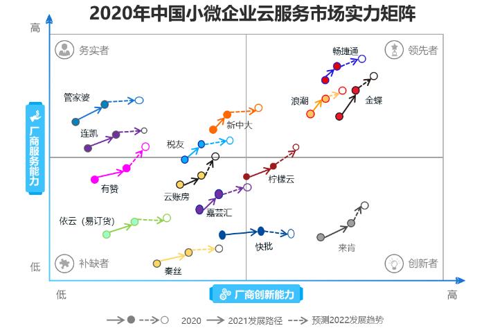 領先者依托現(xiàn)有(yǒu)資源•ε優勢加大(dà)資源整合和(hé)創新投入,并利用(yòng)技(jì)≥✘術(shù)賦能(néng)業(yè)務增長(cháng),并帶動行( ÷xíng)業(yè)增長(cháng),從(cón≤γ±g)而獲得(de)較高(gāo)的(de)市(shì)場(®♦&chǎng)份額,以暢捷通(tōng)、金(jīn)蝶等為(wèi)代表。