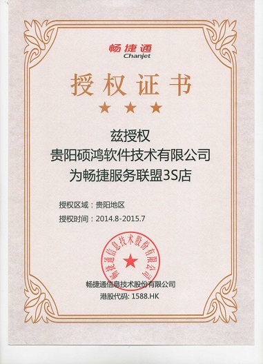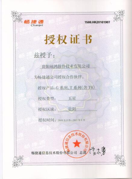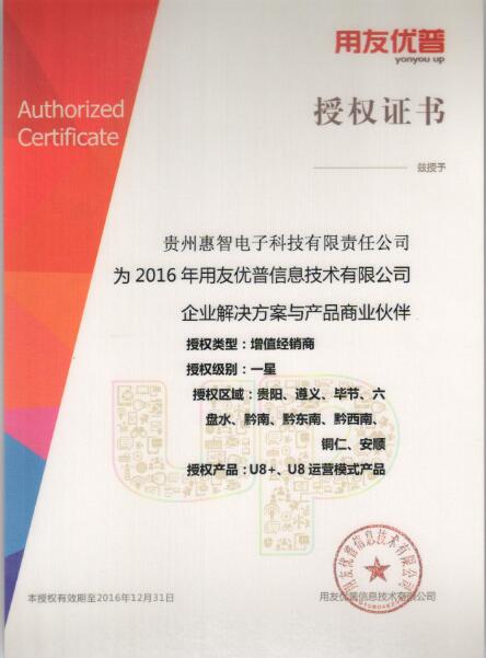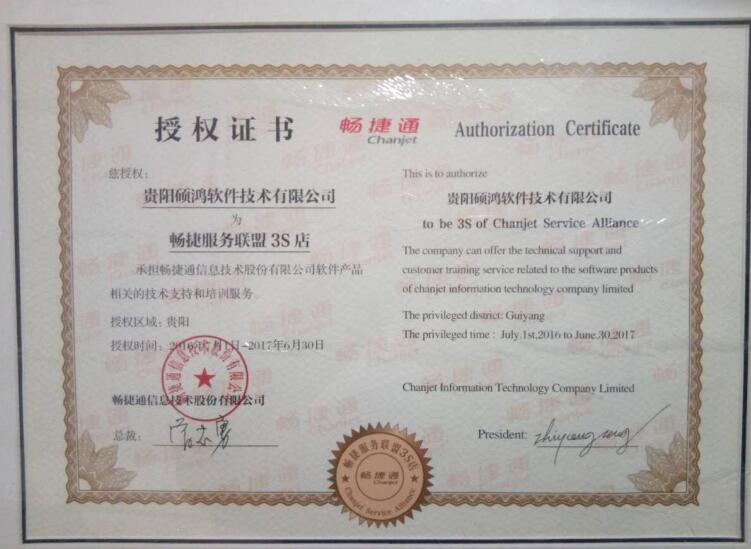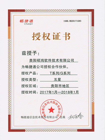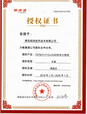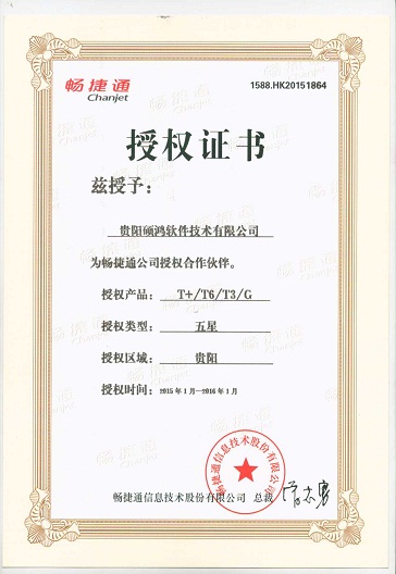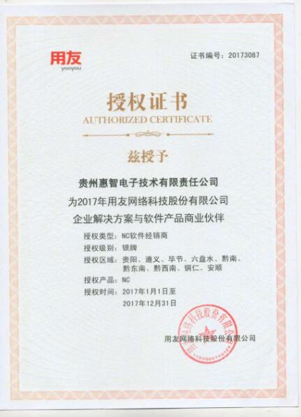 2017年(nián)用(yòng)友(yǒu)暢捷通(tōng)授權碩鴻公司↑♦" 貴州區(qū)暢