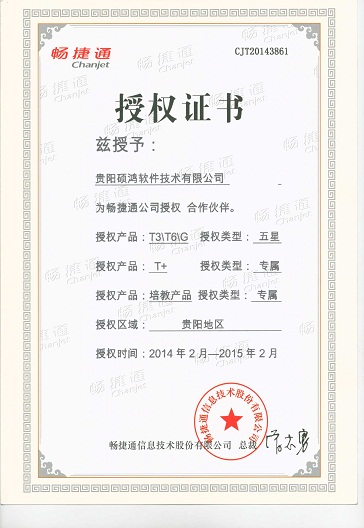 2014年(nián)用(yòng)友(yǒu)暢捷通(tōng)$ 公司授權公司為(wèi)貴州五